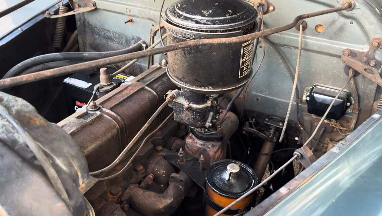 Интересен детайл е стикерът за ограничение на горивото от времето на Втората световна война на предното стъкло – малка историческа следа, която добавя стойност на автомобила. Двигателят Stovebolt остава в производство до 1953 г., а конструкцията се използва до 1962 г., като неговият по-голям наследник 235 куб. инча ще задвижи C1 Corvette.