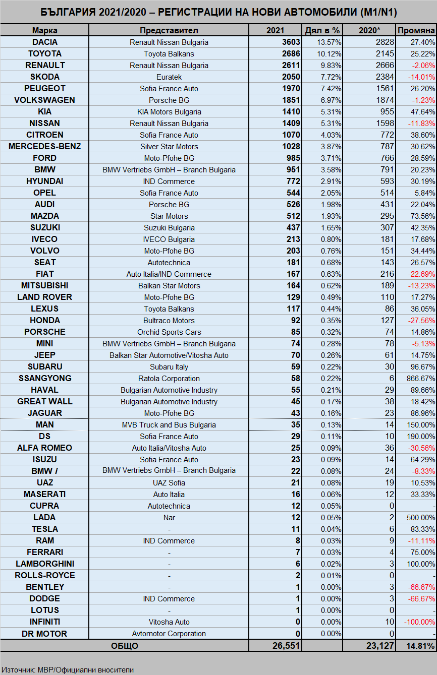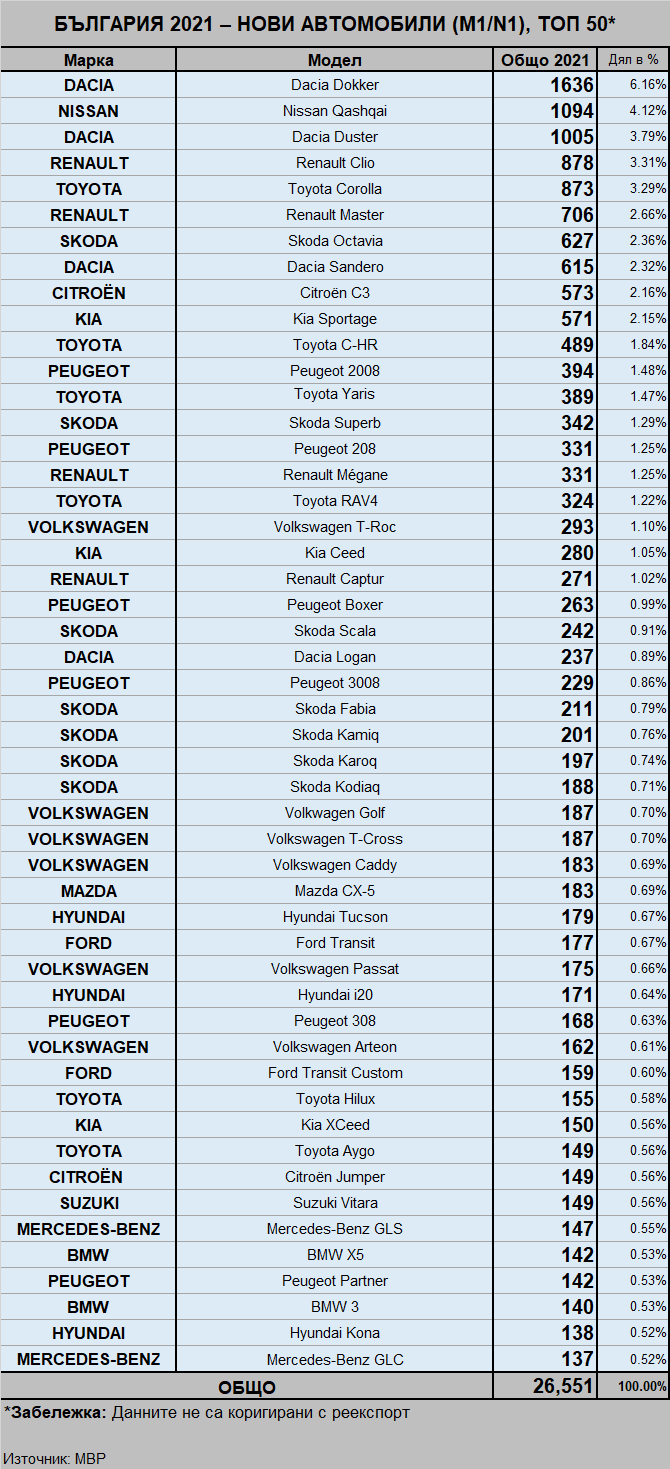 И тук нищо ново: Dacia са с две глави над следващите ги |