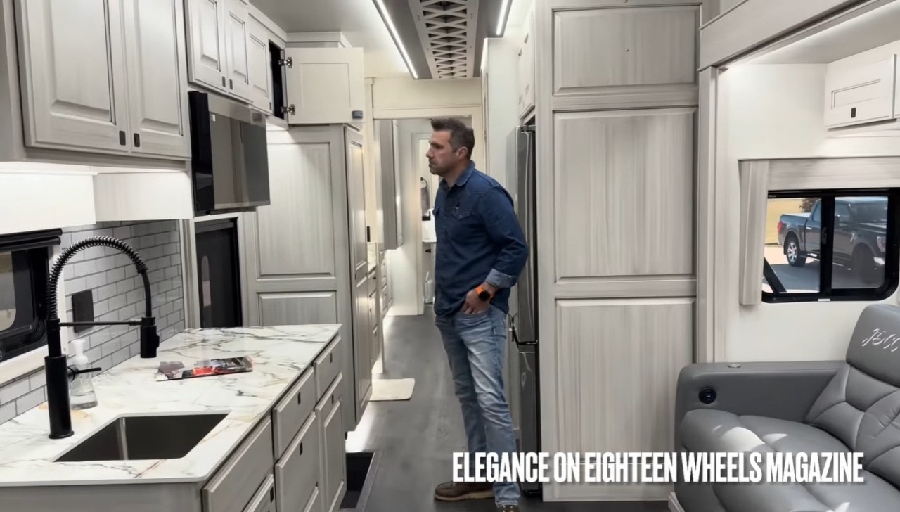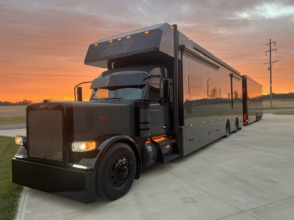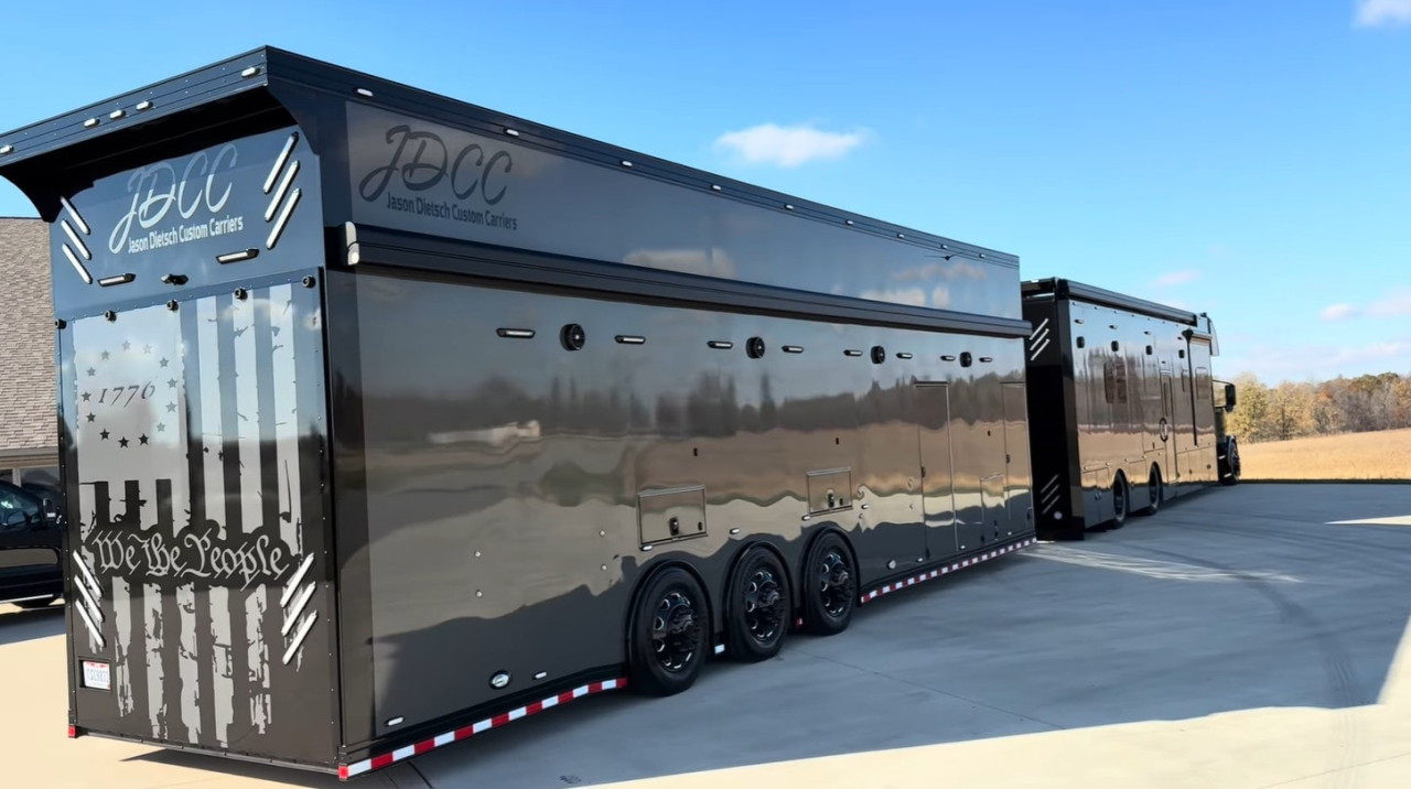 Ако някога сте се чудили как изглежда перфектният дом на колела за професионален състезател, Coach #13 на JDDC Custom Coach дава повече от ясен отговор. Това не е просто камион с ремарке, а пълноценна мобилна резиденция, създадена да превозва автомобили, техника, семейство и… много комфорт.