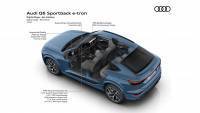 Q6 се предлага във версии с AWD, задно задвижване и високопроизводителен SQ6, както и по-аеродинамичен Sportback. Всеки модел е снабден с 100 kWh литиево-йонна батерия, предоставяща пробег между 442 и 516 км според прогнозите на Агенцията за защита на околната среда. При оптимални условия батерията може да се зареди от 10% до 80% за около 21 минути.