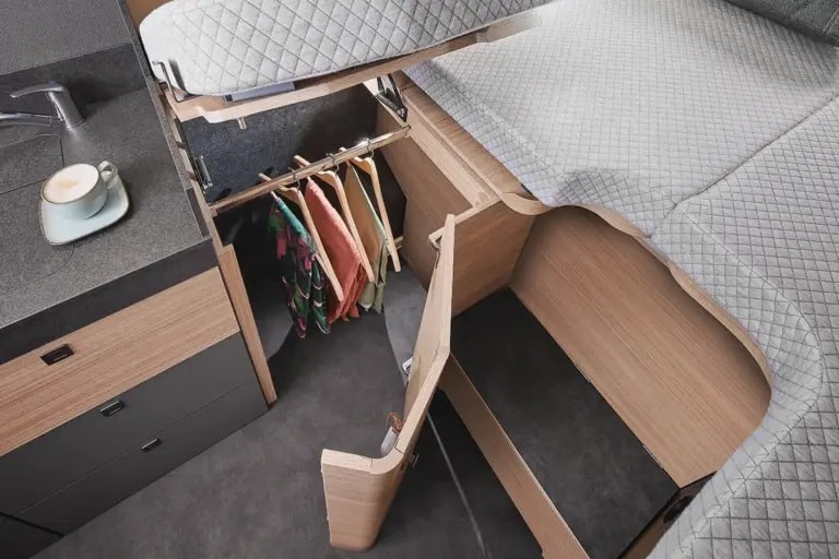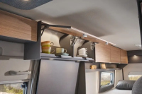 Базовата цена започва от около £52 340, като купувачите могат да избират между три линии – Active, Ambition и Exclusive. Топ версията се доближава до £75 000.За да се създаде усещане за откритост, кухнята е скъсена и изместена назад, а горният шкаф над плъзгащата врата е премахнат. Банята Ergo използва ултра икономичен секторен щорен параван, освобождавайки място пред кухненската зона.