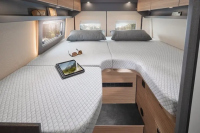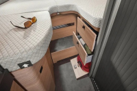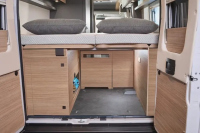Отзад са монтирани две надлъжни легла, всяко над 2,0 m. С опционна възглавница те се превръщат в обща спалня. Под леглата има гардероб, големи чекмеджета и сваляеми стъпала. Опционален изскачащ покрив добавя още две легла и превръща Relax в семеен кемперван.
