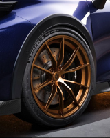 Концепцията стои по-ниско благодарение на модифицирано окачване. Златисти V-образни джанти и Michelin гуми подсилват визията. По-големи спирачки и спортни седалки обещават контрол при високо темпо.