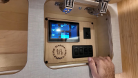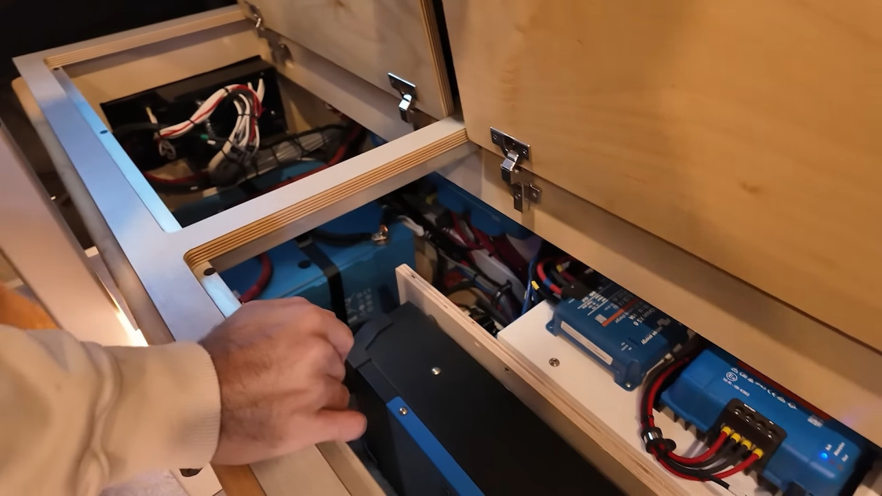 Системите са автономни и мощни: литиева батерия 600 Ah, инвертор 3 000 W, резервоари за чиста и сива вода (132 л и 76 л) и хидронна отоплителна система за топъл въздух и вода.