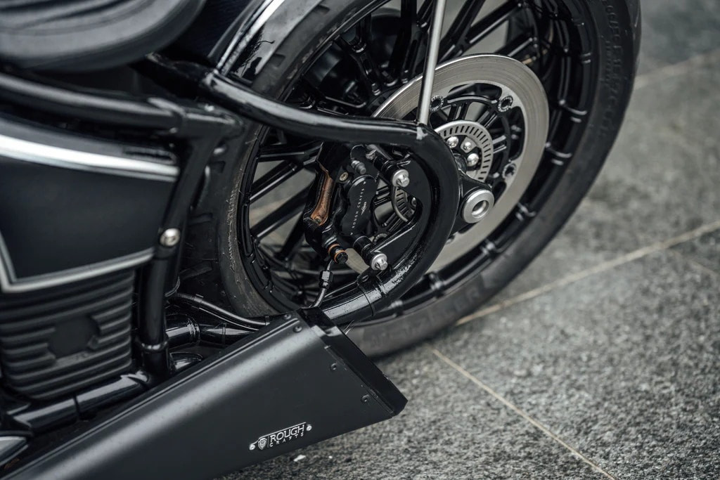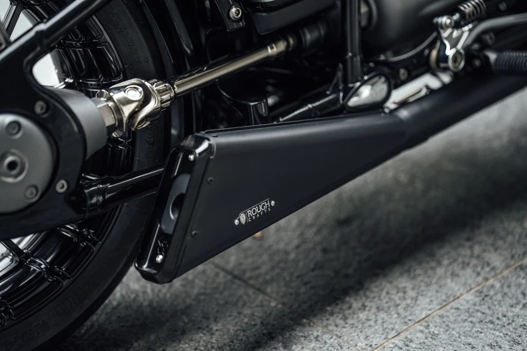 Кокпитът комбинира заводски и афтърмаркет елементи. Ниско издигнат кормилен лост заменя оригинала, запазени са подгряваните ръкохватки и OEM уредът. LED фар с решетка – отличителен белег на Rough Crafts – доминира отпред, а задната част получава двойка многофункционални LED модули.