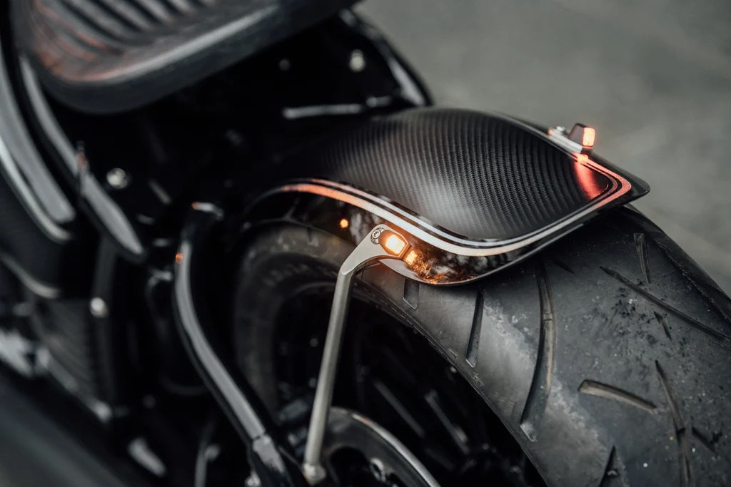 MS Pro изработва компактни калници, а оригиналните странични капаци остават, но обграждат елегантна бобър седалка, покрита с черна кожа. Всички допълнения получават карбонови вложки за още стил.