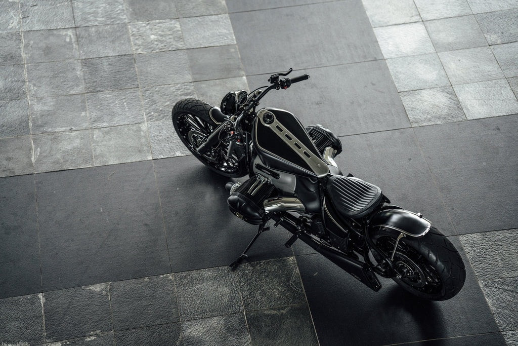Черното доминира – гланц и мат, подсилени с бели кантове, боядисани от Line&Circle Custom Studio като реверанс към класическите модели на BMW. Двигателят е акцентиран с капаци Roland Sands Design и емблеми от 2 Abnormal Sides, а новата черна изпускателна система визуално олекотява мотора. Завършената машина се връща при собственика си, който получава уникален хибрид между модерно инженерство и почти вековна наследствена естетика.