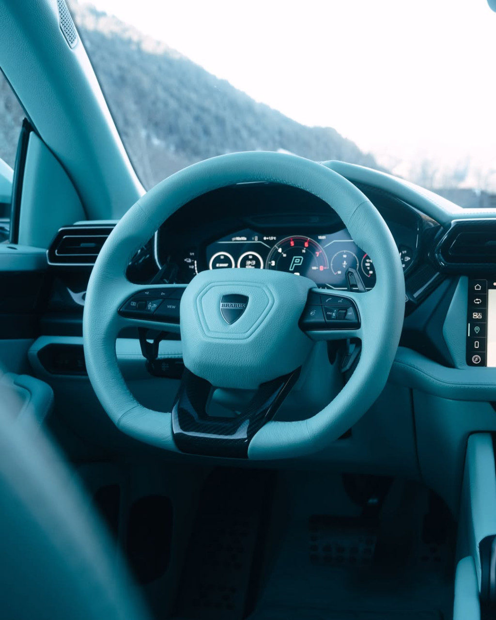 В салона Urus SE получава изпълнение Brabus Masterpiece с „mint“ визия. Описани са вложки от микрофибър Alcantara, капитонирана и перфорирана кожена тапицерия, карбонови апликации и множество лога на Brabus.