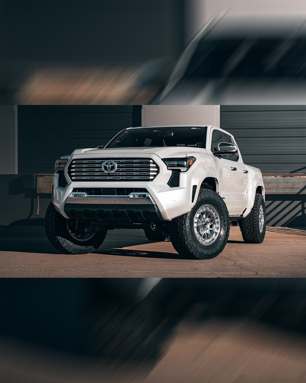 Westcott Designs от Финикс, Аризона, показа поредната си впечатляваща интерпретация на Toyota Tacoma (N400). Автомобилът е в бяло „Ice Cap“ с хромирани детайли, сериозен лифт и офроуд джанти, които му придават внушително присъствие на пътя и извън него.