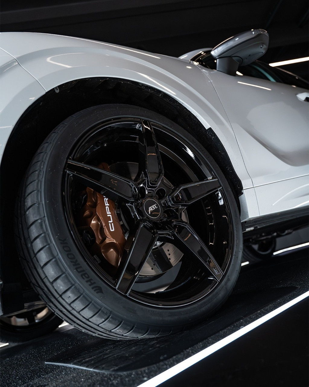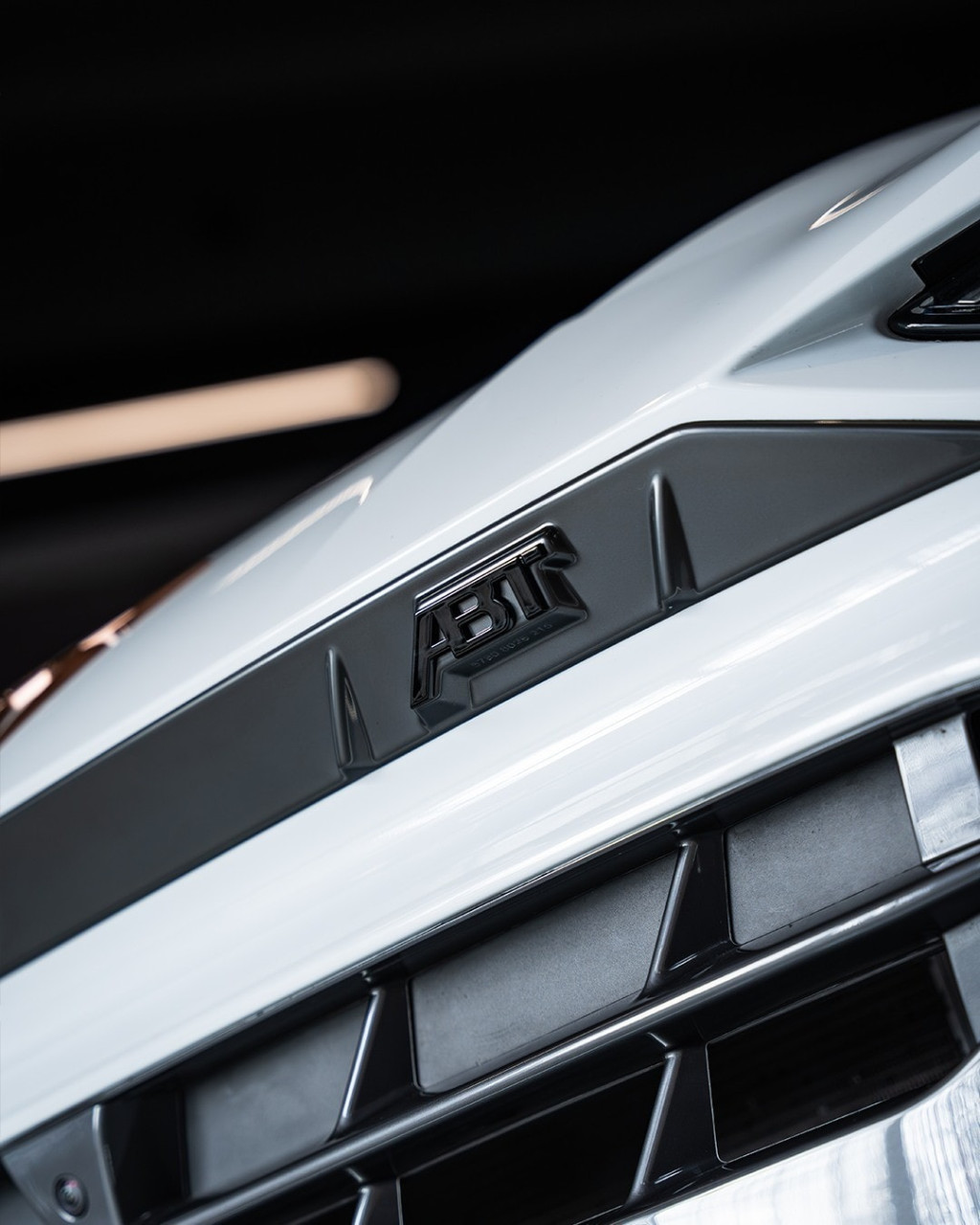 Има и характерни за ABT доработки от вторичния пазар: лога на ABT на решетката и на капака на багажника, както и нови колела. Конкретният автомобил е с гланцово черни алуминиеви джанти с пет спици, медни спирачни апарати с брандинг Cupra и други черни акценти, които контрастират на бялата каросерия.
