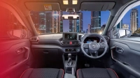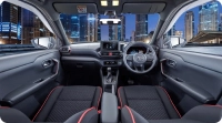 Кабината запазва черната тема с червени акценти. Наличен е 9-инчов инфоразвлекателен екран, съчетан с цифров приборен панел. Практичността се подобрява чрез чекмедже под седалката, изскачащ държач за чаша и пространство под централната конзола.