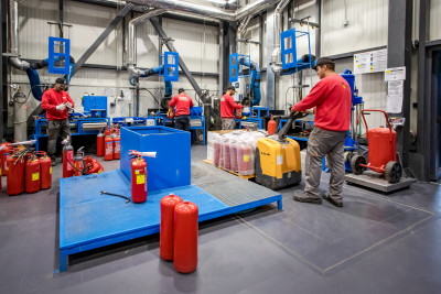 Мобилни сервизи с най-висок клас оборудване за извършване на техническо обслужване на пожарогасители на място в обекта на клиента.