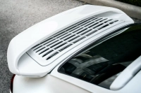 Каросерията получава цялостен ремонт и боя Icy White с металикови акценти Agate Gray. Нови LED фарове с дневни светлини и свързани стопове придават съвременен почерк. Въпреки това силуетът остава ясно разпознаваем като 993. Резултатът е дискретно освежаване, а не радикална промяна.