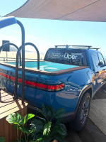 Платформите Uber и Turo обединиха усилия за еднократен промоционален проект. Те превърнаха изцяло електрическия Rivian R1T в минибасейн на колела. Товарният отсек бе напълнен с вода и сега побира няколко души едновременно.