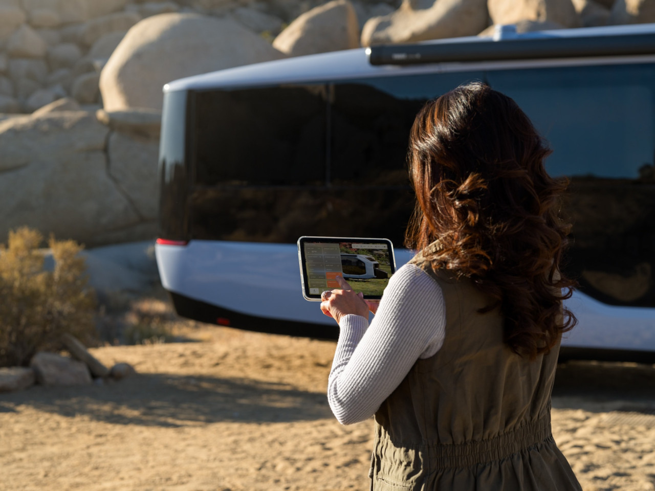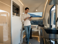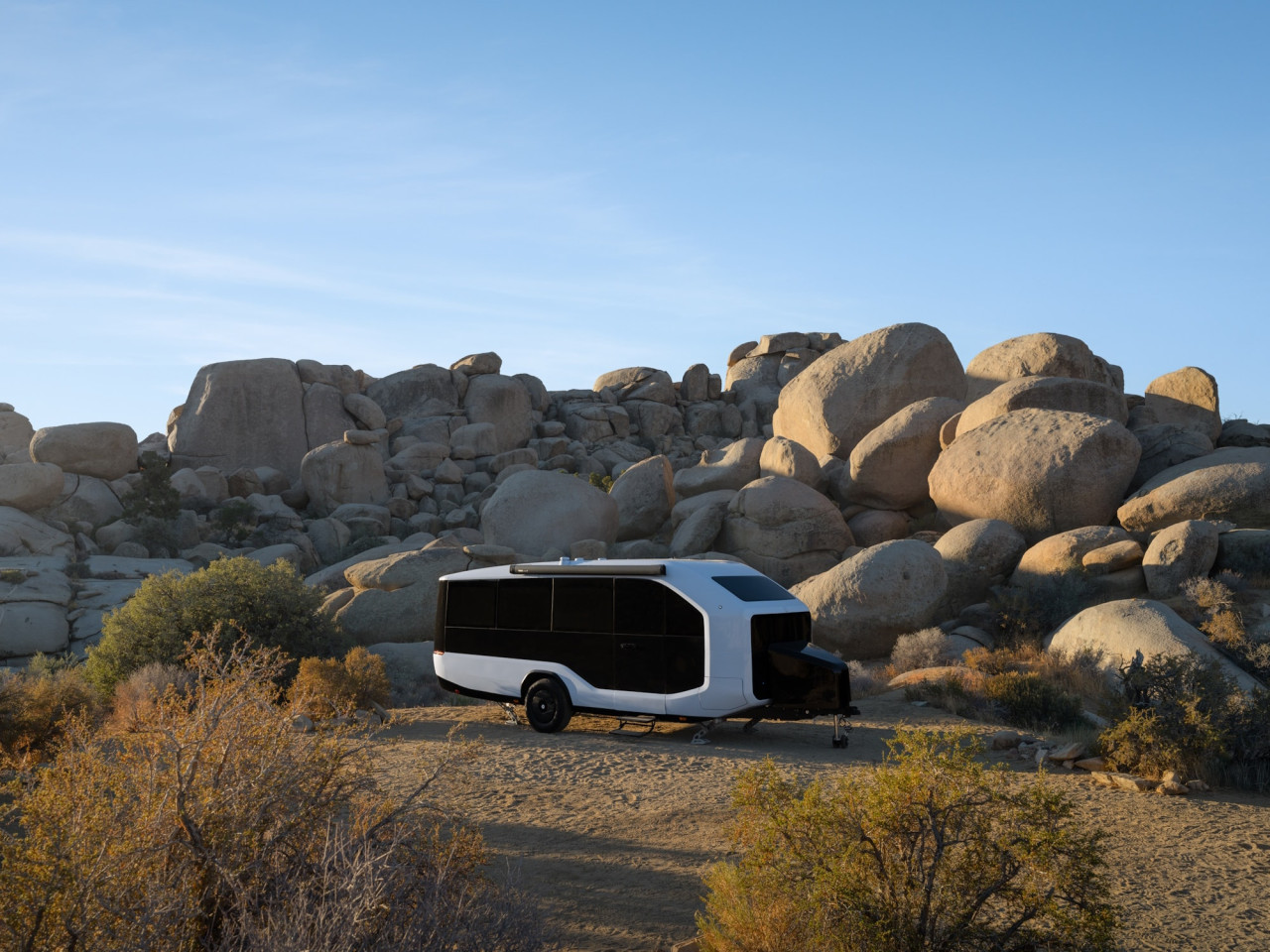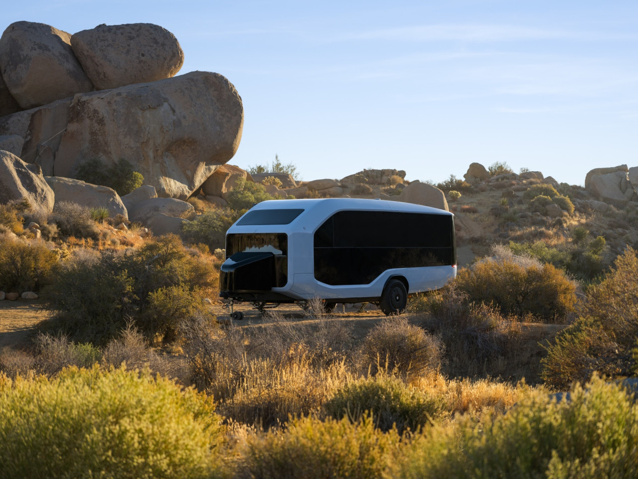 Pebble Flow използва Nvidia Drive Orin SoC и предлага функции като Magic Hitch, InstaCamp и Auto Dump. Идеята е чрез AI да се автоматизират операции като нивелиране, позициониране, прикачване и изпразване на резервоара за черни води.