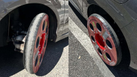Виждането на тънка гума на автомобил не е необичайно явление. Обикновено тя е монтирана като резервно колело за пестене на място. Въпреки това, става доста странно, когато и четирите колела изглеждат по този начин. В Марсилия бе забелязан Peugeot 208, оборудван с четири 'тънки' гуми. Но всъщност миниатюрният автомобил беше оборудван с така нареченото 'универсално колело', предлагано от френската компания Enovcar.