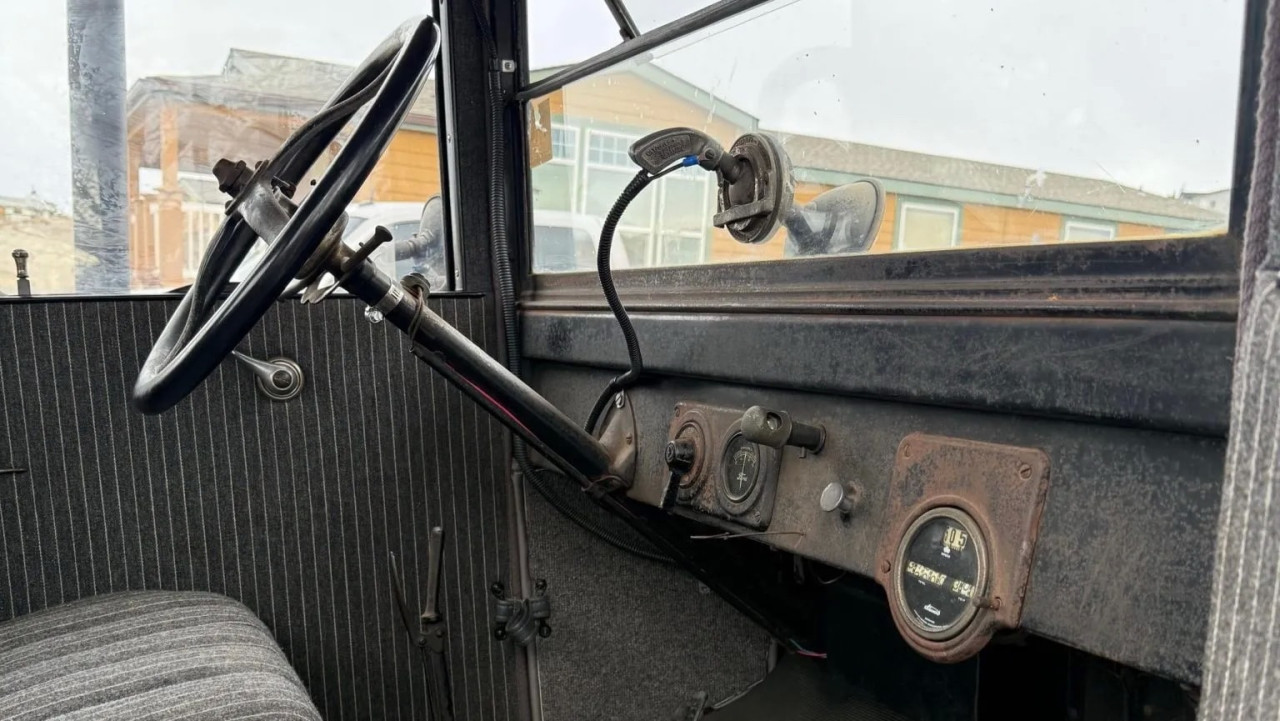 Интериорът включва пейка и четириспицов волан. По данни от описанието, нито скоростомерът, нито одометърът работят.