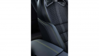 Кабината комбинира черна кожа и микрофибър Dinamica. Ярки Hyper Lime шевове украсяват седалките, панелите на вратите и волана, създавайки запомнящ се контраст с тъмната облицовка.