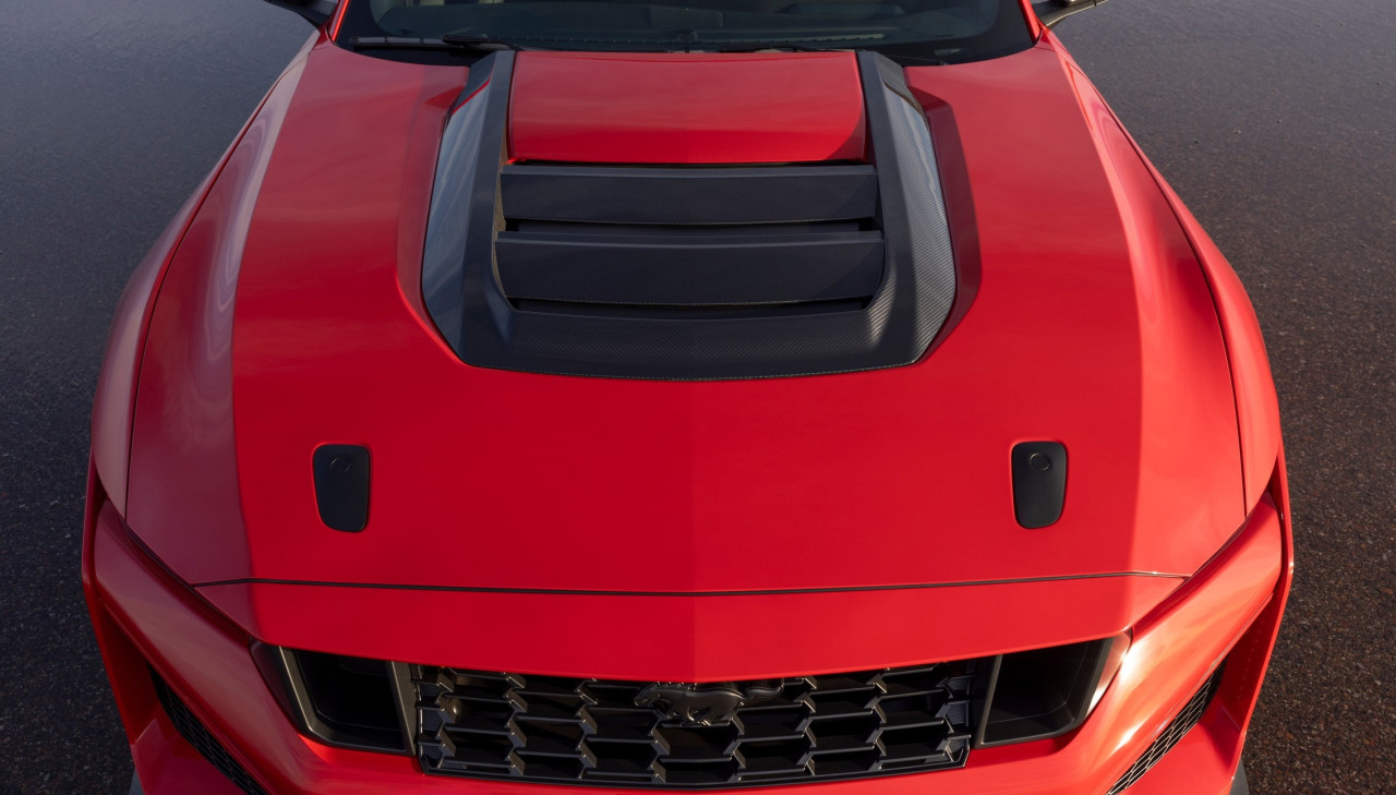 Новият Mustang не възражда имена като Shelby GT350, GT500, Cobra или Boss – остава при Dark Horse SC, с фокус върху силовия тракт и пистовите пакети.