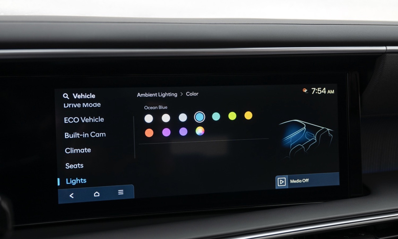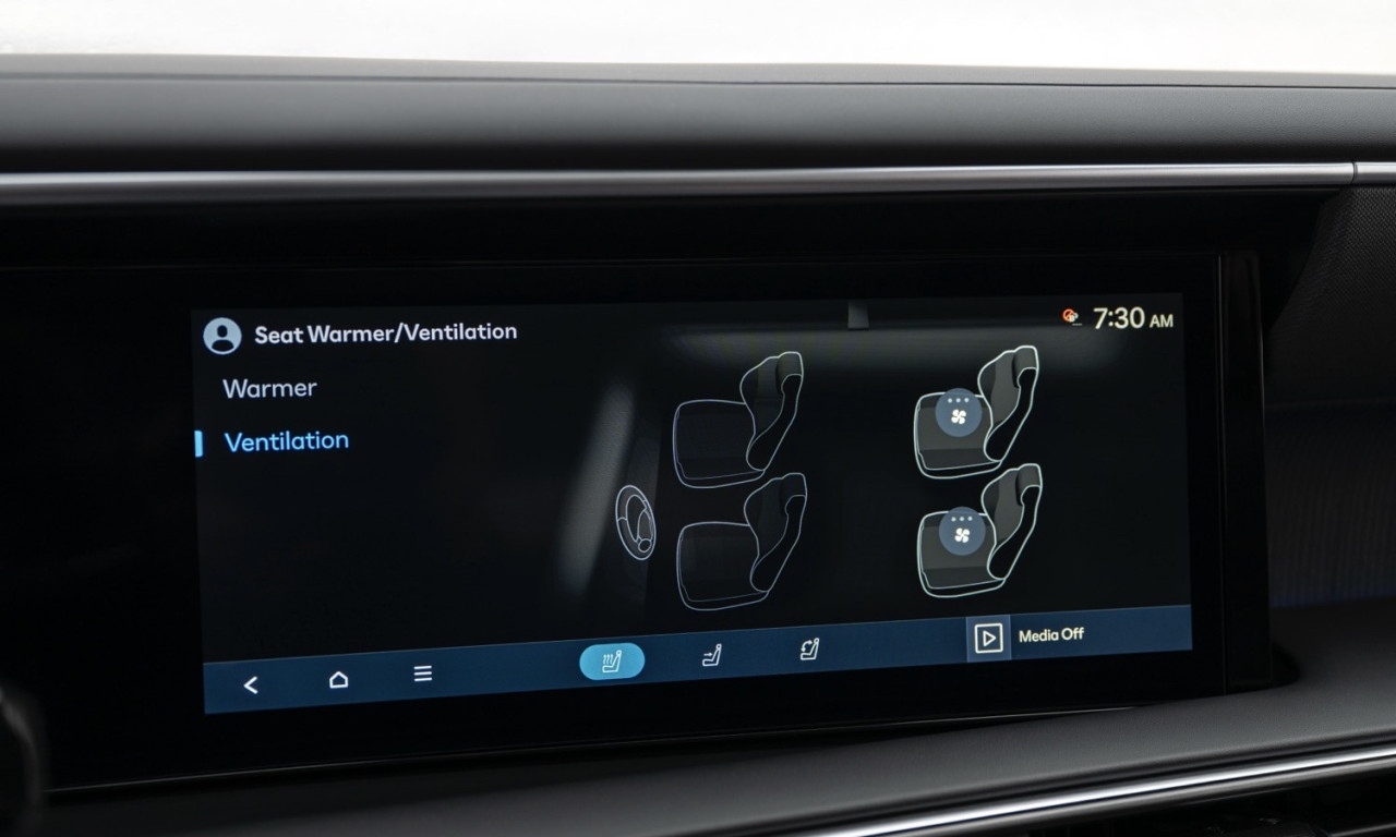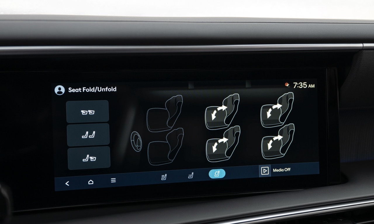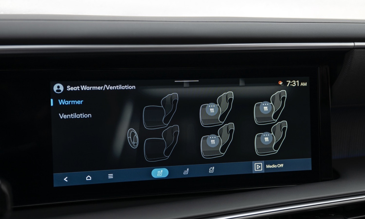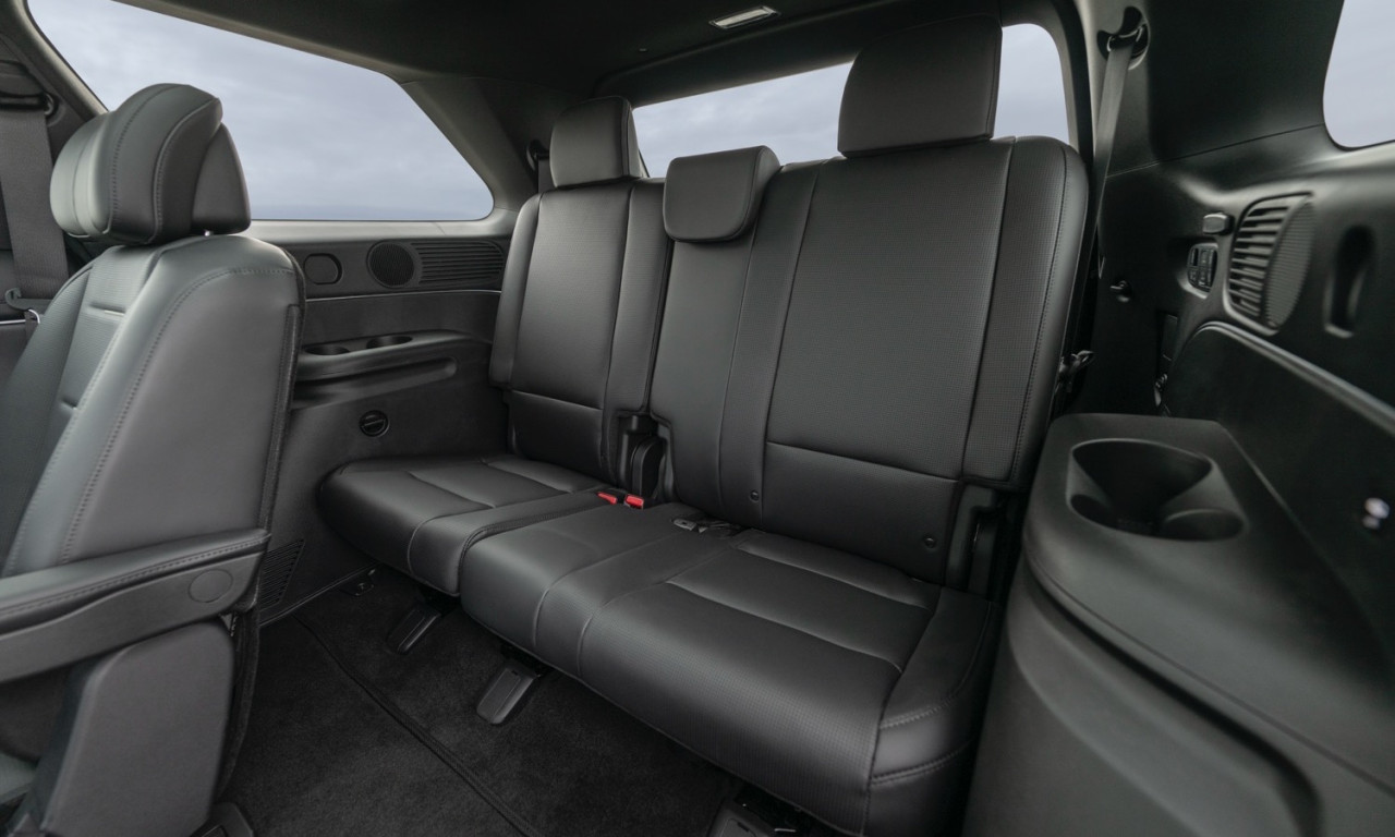 Кабината разполага с капитански седалки във втория ред. Първите два реда имат отопление и вентилация. Третият ред също се отоплява. Климатикът е тризонов. Две 12,3-инчови екрана оформят таблото. Apple CarPlay и Android Auto работят безжично. Озвучаването е Bose с 12 високоговорителя. Налични са Head-Up дисплей, камера 360° и e-Shift чрез бутон.Сигурност и асистенти