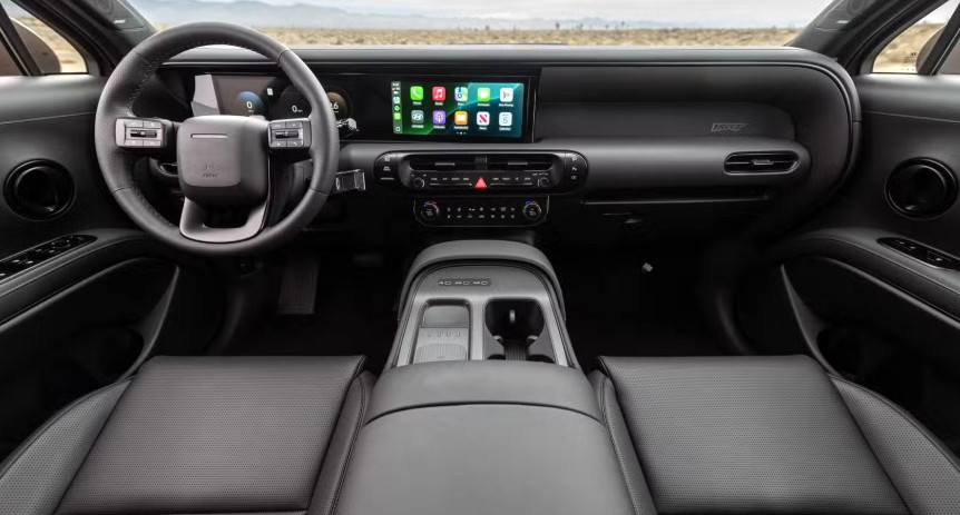 Интериорът е може би най-силният аргумент на модела. Кабината е оформена с хоризонтално табло и изчистен дизайн, който напомня повече на Genesis, отколкото на типичен масов SUV. Почти всички повърхности са меки на допир, а във високите нива Calligraphy усещането се подсилва от кожа Nappa, фина атмосферна светлина и прецизни декоративни шевове. Металните бутони върху централната конзола и големият 12,3-инчов екран допринасят за усещането за качество, което обикновено очакваме от автомобили на съвсем друго ценово ниво.