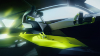 Кабината е минималистична. Има малък волан, напомнящ фирмения компас и окачена състезателна седалка с шестточков колан. Вградени сензори откриват близки автомобили и активират светлинни сигнали върху осветените панели на таблото и вратите.