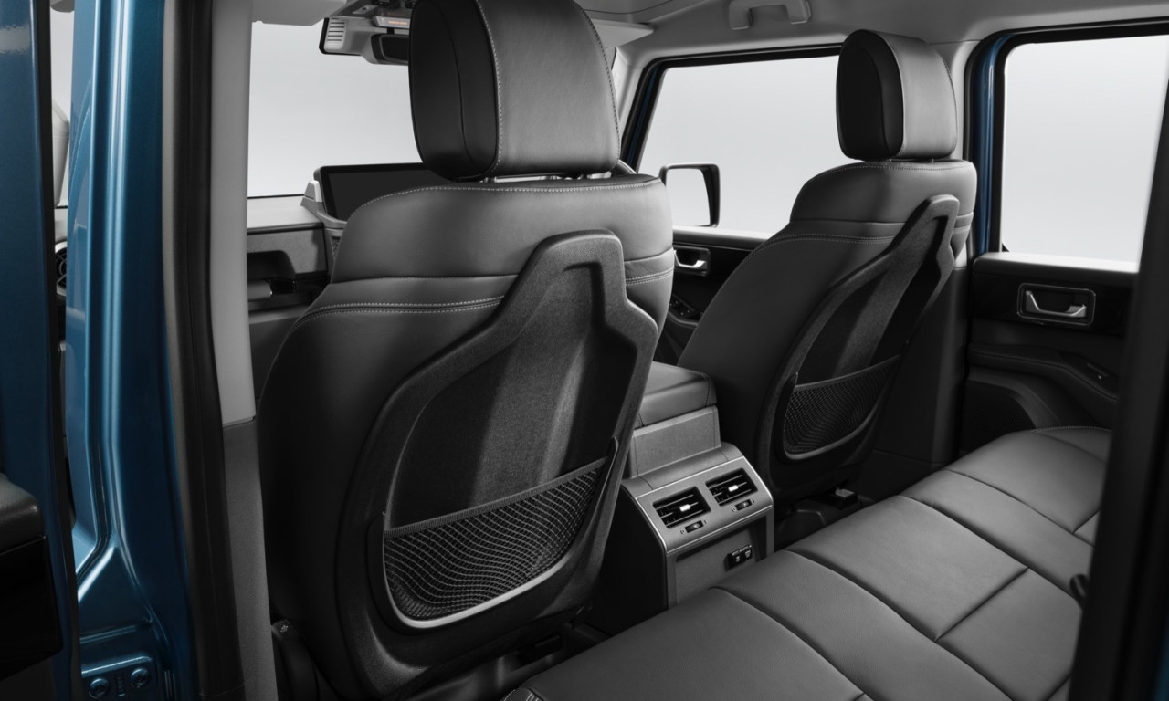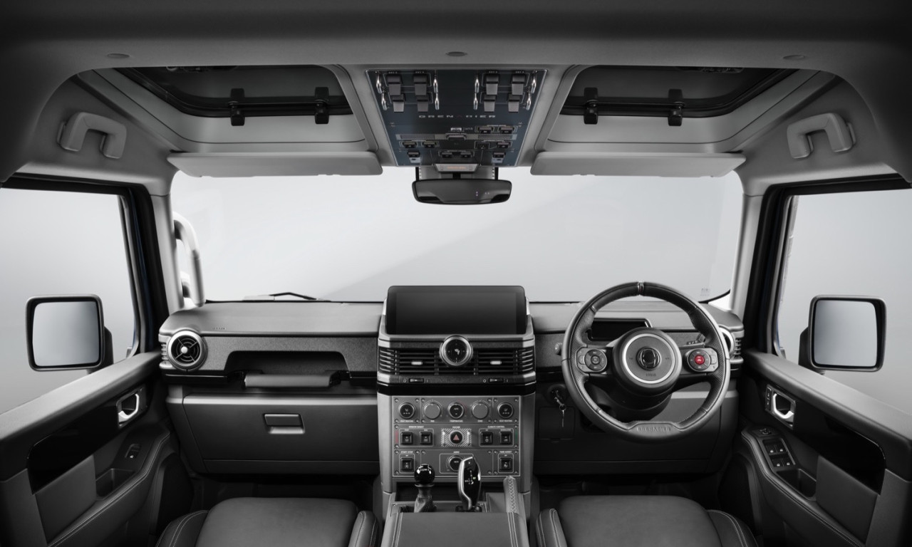 Интериорът запазва утилитарния си характер, с управление, пригодено за работа с ръкавици, и оформление на таблото с „авиационен“ стил. Инструментите и навигацията са концентрирани в централен 12,3-инчов екран, който служи като контролен център.