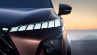 Предната решетка е огромна и съдържа вертикални ламели, подобно на обновения QX60 и новия QX80. Светлините образуват пълна ширина отпред и отзад, а дневните LED ленти играят ролята на „очи“. Реалните фарове са скрити по-ниско в опушен панел. Концептът стои върху 22-инчови колела, а матовият лилав цвят носи името Twilight.