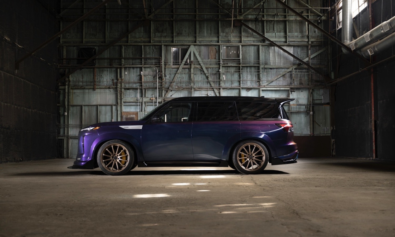 Infiniti разкри QX80 R-Spec старта на SEMA в Лас Вегас. Моделът е единична демонстрационна машина. Той комбинира луксозен триредов SUV с механика от Nissan GT-R и обещава четирицифрена мощ.