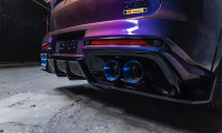 Карбоновият widebody-комплект разширява купето. Добавени са ARP сплитер, нови прагове и масивно крило. Задният дифузьор и изпускателните накрайници копират стила на R35. Обвивката Midnight Purple напомня култовите R34 и R35. 24-инчови бронзови джанти, оформени по примера на GT-R, скриват карбоново-керамични спирачки. Заводският стил остава само в емблемите.