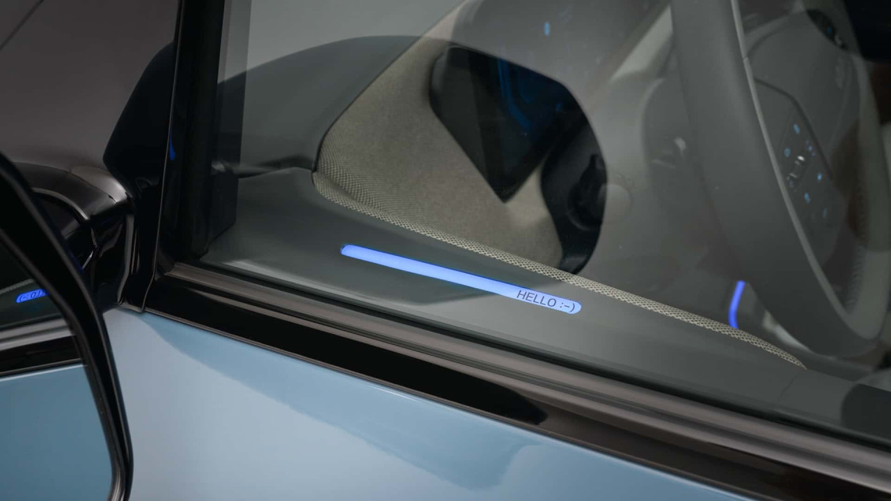 Салонът комбинира дигитални технологии с физически бутони за бърз достъп до климатика, ролка за звук и ръчни настройки на въздуховодите. Основният дисплей е 12,3-инчов, допълнен от още два – централният 12,3-инчов екран и 5,3-инчов панел за климатичните контроли. EV2 предлага безжично зареждане, USB-C портове със 100 W, аудиосистема Harman Kardon, OTA ъпдейти и дори Pet Mode за домашни любимци.