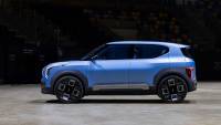 Иновативният EV разполага с двоен светлинен дизайн и вертикални задни светлини, разположени отстрани. Както е типично за концепциите, Kia е премахнала B-стълбовете и е инсталирала врати на панти отзад, за по-лесно влизане и излизане от EV2. Очаква се обаче моделът, който ще бъде пуснат през 2026 г., да има традиционно оформление и обикновени дръжки на вратите.