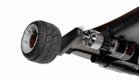 Kiro използва плътни гумени гуми тип „всъдеход“, което подсказва, че е проектиран и за по-неравни терени извън гладкия асфалт. Над моторите има прозрачен защитен капак, който съчетава функционалност и визуален ефект, оставяйки механиката на показ.