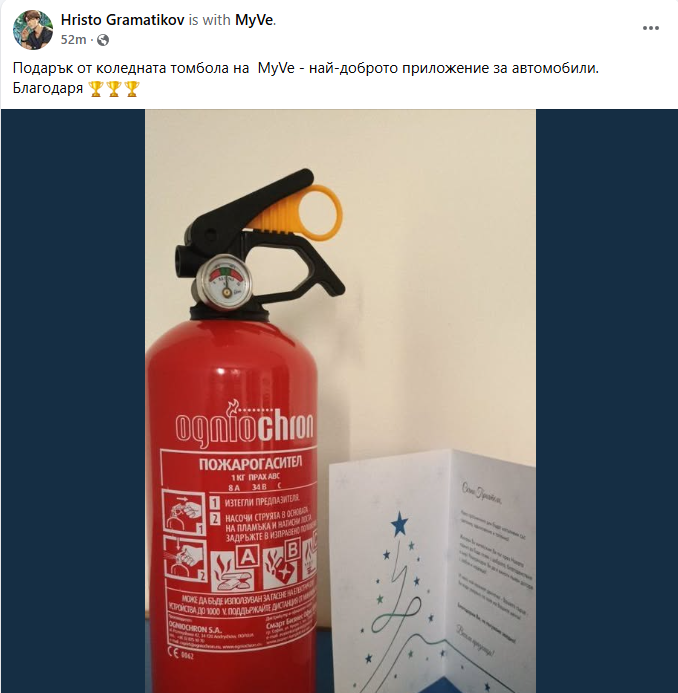 Коледната игра на MyVe се утвърждава като една от най-значимите и полезни празнични инициативи за автомобилисти в България. До момента в рамките на кампанията вече са раздадени над 700 подаръка, а до края ѝ остават още много награди, които могат да бъдат спечелени от регистрираните участници.