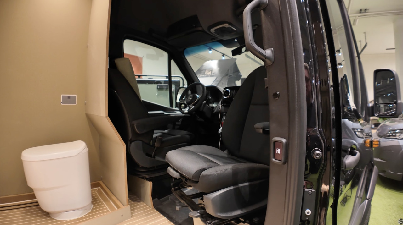 Ключовият акцент тук е пълноценната мокра баня, която е описана като изненадващо просторна за този клас. Всичко това е реализирано в 7-метров формат, тъй като базата е Sprinter, като се посочва, че почти не се жертва комфорт.