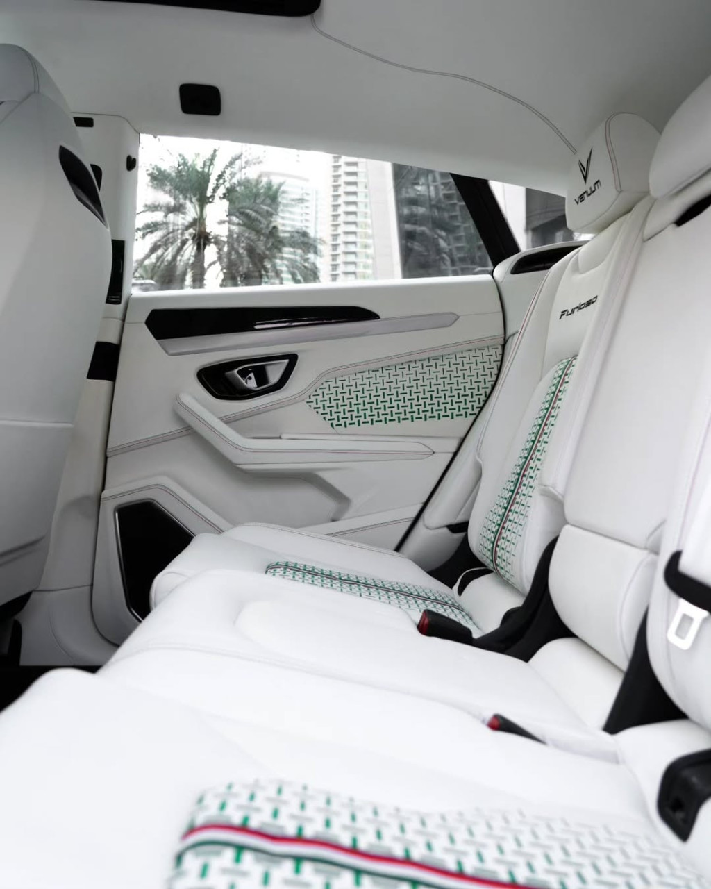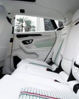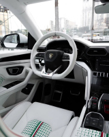 Интериорът е смесица от спорт и лукс. Колонките и таванът са бели, а стелките и мокетите – черни. Таблото е изпълнено с черни акценти, докато оригиналното лого на Lamborghini остава видимо на волана и други ключови места. Всеки детайл е подбран, за да създаде усещане за премиум SUV, който крещи стил и индивидуалност.