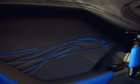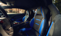 Предният сплитер, въздухозаборниците и дифузорът са от лъскав карбон, съчетани с матово-черни накрайници на изпускателната система. Черните джанти и сини спирачни апарати завършват динамичната визия. Покривът и логото също блестят в черно.