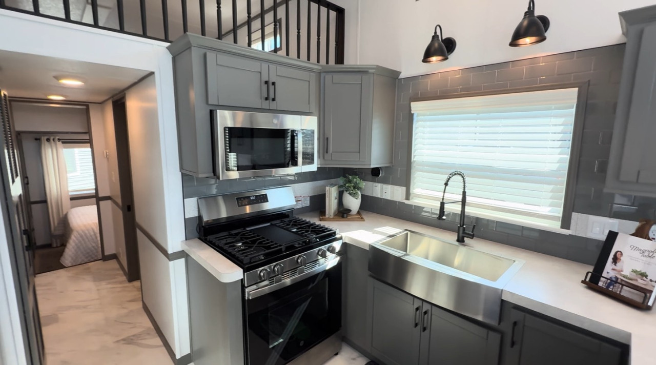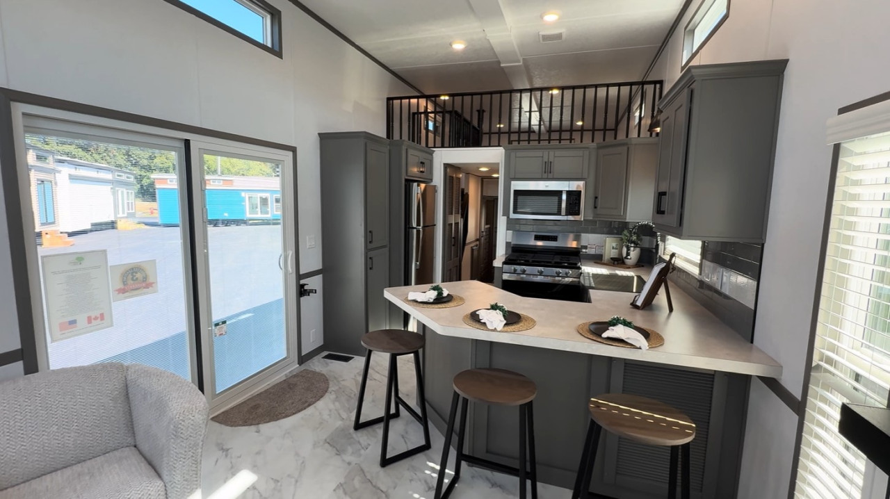 Tiny house моделът с дължина 11 м и ширина 3,3 м предлага 36,7 кв. м жилищна площ – под американската граница от 399 кв. фута – и е идеално решение за тези, които искат да намалят пространството, без да се лишават от комфорт. Новата версия за 2026 г. идва с обновени цветове и висококачествени материи.