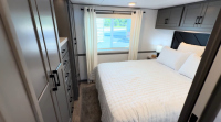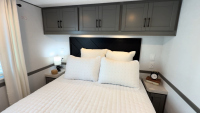 Разтегателен диван добавя още две спални места за гости. Банята и пералното помещение са компактни, но напълно функционални – с ъглов душ, тоалетна, мивка и шкаф за бельо, докато спалнята предлага queen легло с висококласен матрак, нощни шкафчета и стена с гардероби и скрин, като понижението на пода осигурява пълна височина за комфорт. Таванското помещение е мокетирано и разделено на две секции, подходящи за спалня, офис или игрална зона, готови за персонализация.