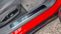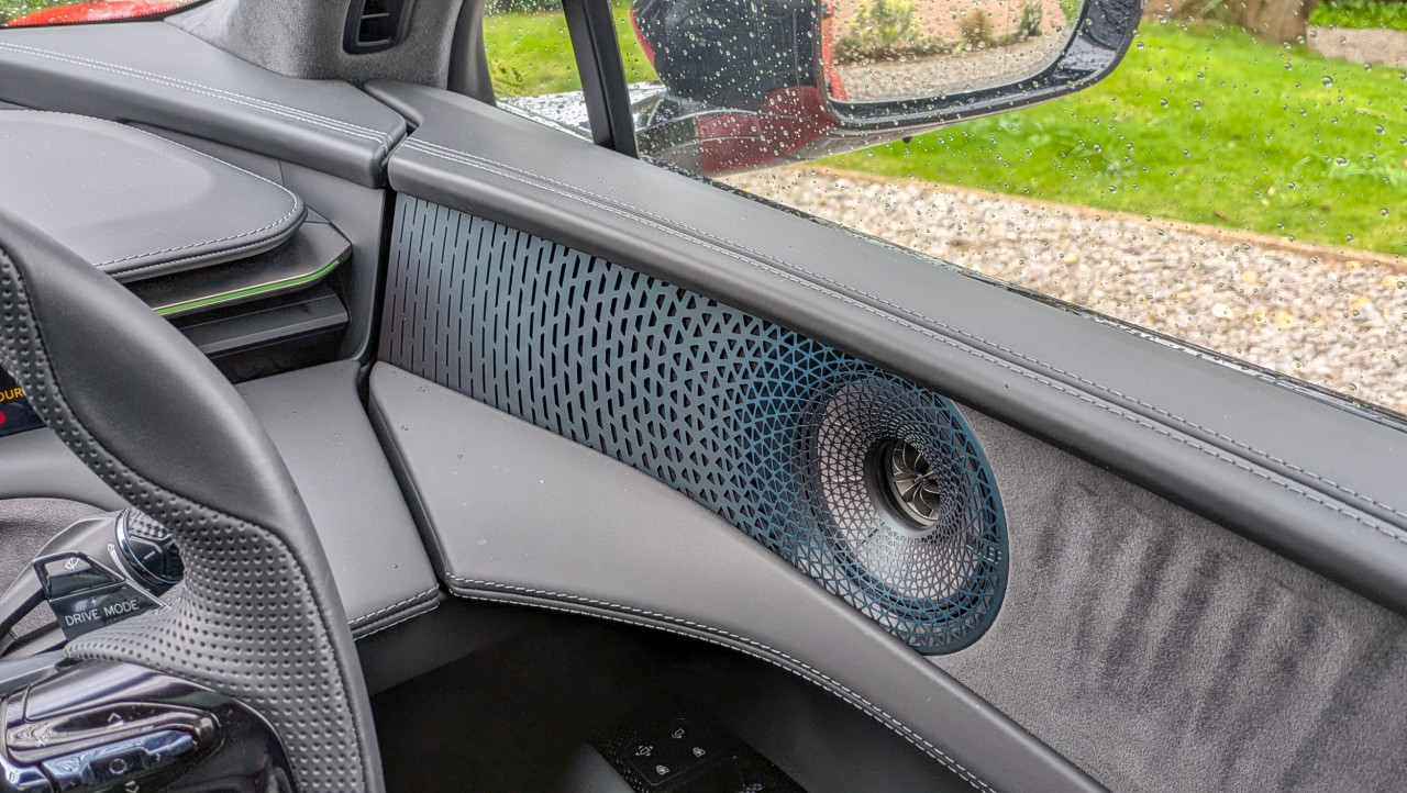 Екстериорът подчертава спортното ДНК на автомобила: остри предни линии, ниска линия на покрива, flush дръжки, които изскачат при отключване, светлинен бар отзад и активно задно крило. Тестовият автомобил е в боя Fireglow Orange с гланцово черни акценти, 21-инчови джанти и червени спирачни апарати. Впечатлението е, че като електромобил Emeya все пак успява да привлича внимание като истински суперкар с V8 или V12.