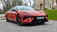 Електрическата част впечатлява: версията с 603 к.с. има пробег, заявен на 579–610 км (WLTP), но реално при тестове средният разход е около 2,2 мили/кВтч, което дава приблизителен пробег от 351 км. Зареждането също е от световна класа – Emeya поддържа до 420 kW DC, като 10–80% се постига за 14 минути при идеални условия, а при 350 kW зарядна станция – за 18 минути.