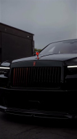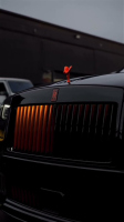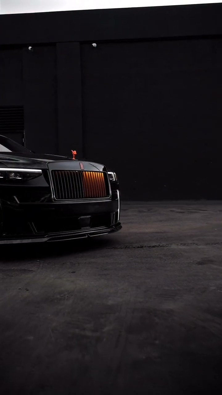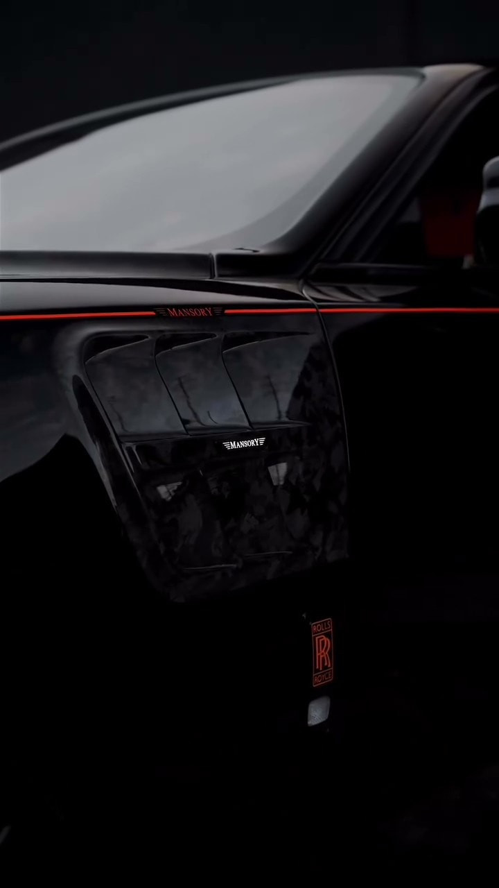 Видеото показва тъмен екстериор, който на пръв поглед прикрива част от промените по каросерията, но детайлите ясно подсказват тунинг – нов комплект джанти, по-ниско окачване, добавен елемент в долната част на предната броня и допълнителни дневни светлини с вертикален дизайн. Част от решетката е оцветена в оранжево, същият акцент се пренася върху Spirit of Ecstasy, логото RR, декоративна линия (pinstripe) и емблемата Mansory на предните калници.