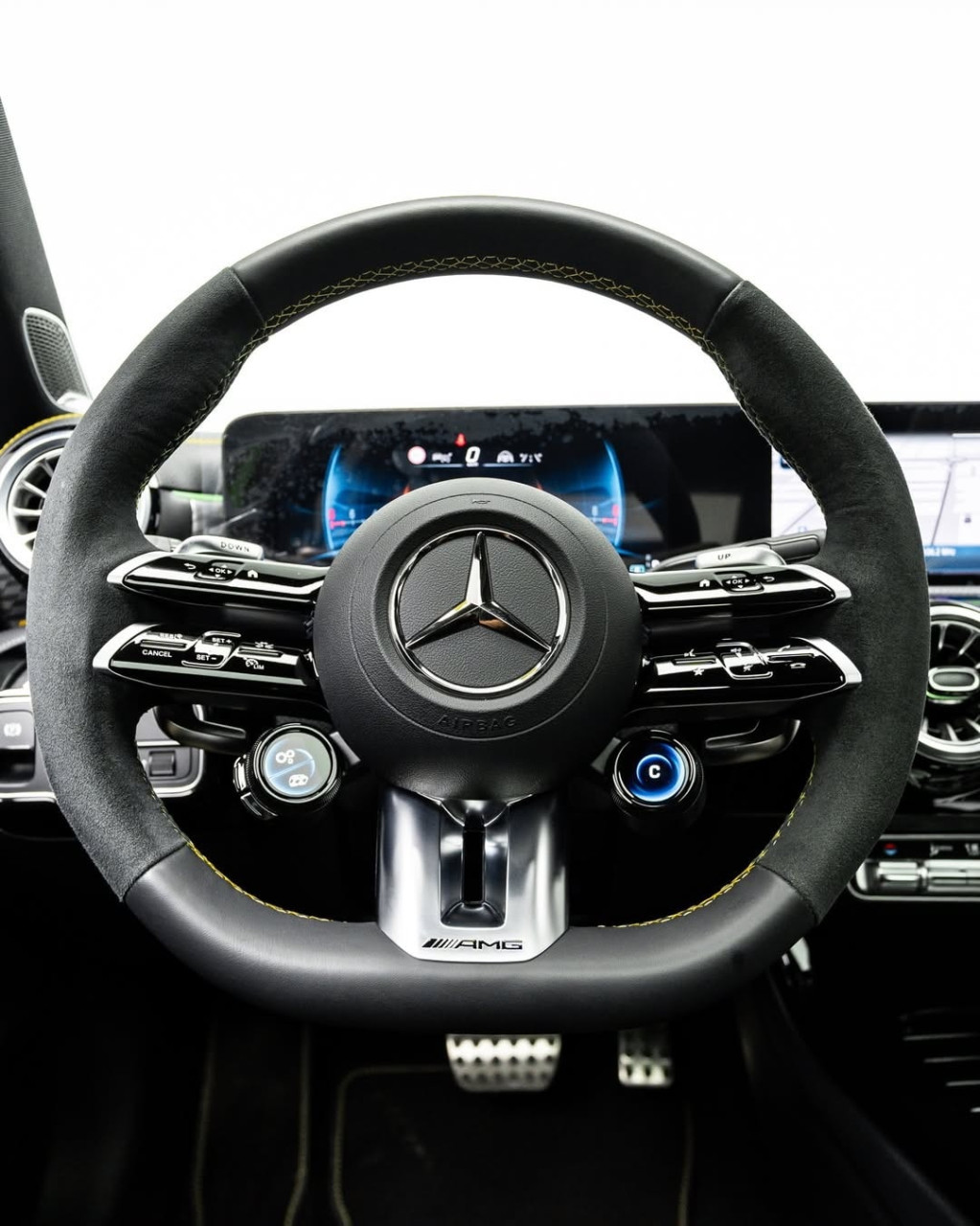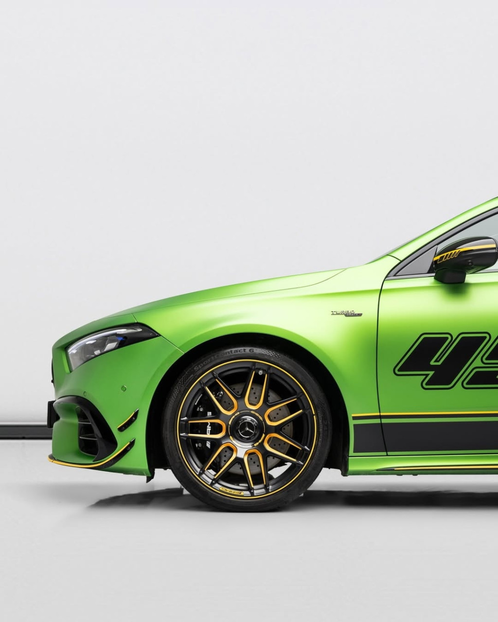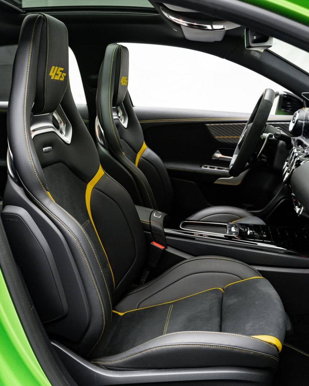Моделът разполага с launch control, drift mode, AMG Ride Control, AMG Drive Select и AMG Performance Exhaust. Под капака е 2,0-литров турбо четирицилиндров двигател, оценен официално на 421 к.с. (310 kW) и 500 Nm. Мощността се подава към системата за задвижване на четирите колела чрез бързопревключваща трансмисия. В тази конфигурация Mercedes-AMG A 45 S ускорява от 0 до 100 км/ч за 3,9 секунди и развива максимална скорост 270 км/ч.