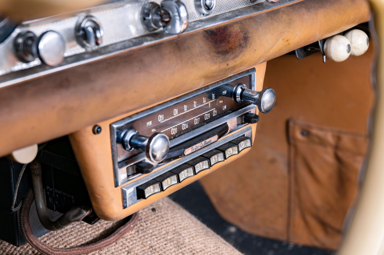 Оригиналният кожен интериор не е бил променян или почистван, а един от двата оригинални куфара все още е с автомобила. Сред редките детайли са външен термометър, монтиран пред пасажерската зона, както и първият регистрационен номер на колата.