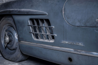 С пробег 34 255 км и поддържан в продължение на седем десетилетия, този Gullwing все още носи голяма част от оригиналната си тъмносивa боя. По нея има следи от времето, а на търга автомобилът е бил дори покрит с прах от гараж, но като цяло е описан като запазен в много добро състояние за възрастта си.
