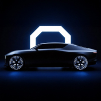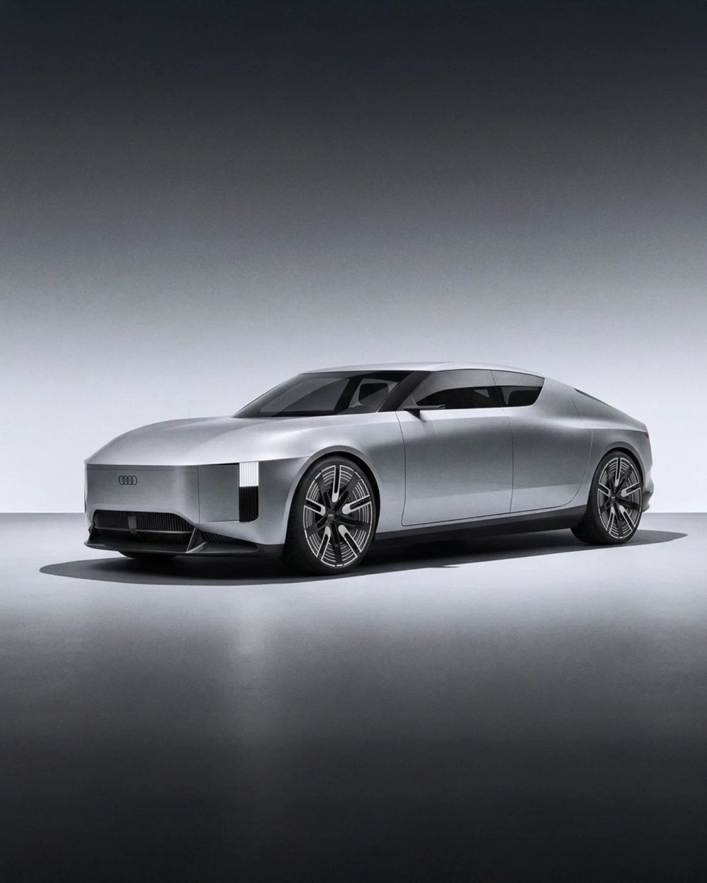 В рендърите обаче посоката е различна. Визуалната концепция изглежда насочена към e-tron тематиката: липсват отворена предна решетка и ауспуси в задната част. Вместо това автомобилът е представен като „монолит“ със спокойни, но на места по-ръбести повърхности, и масивен вертикален преден панел с високи LED фарове.