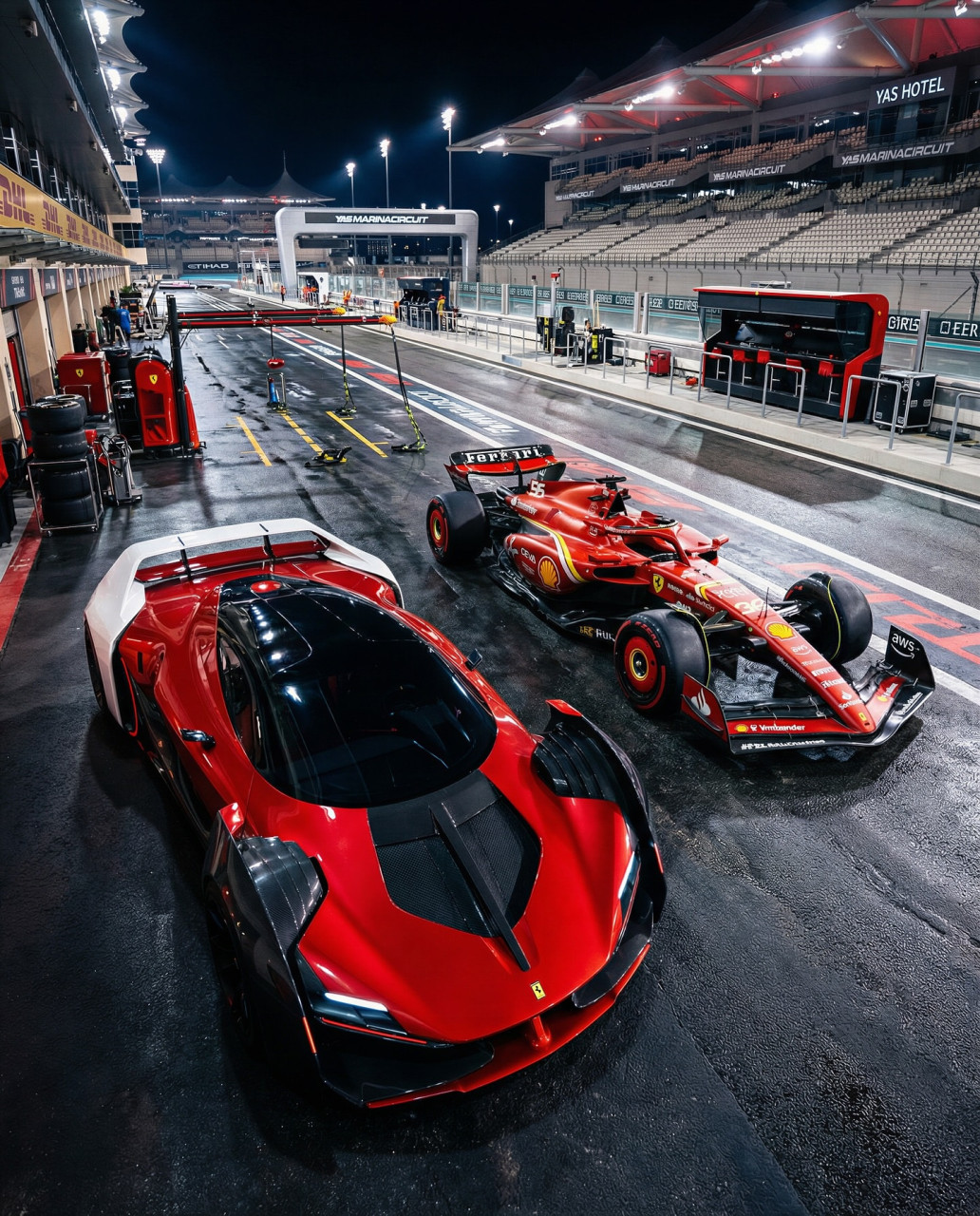 Паралелно с моторните спортове Ferrari продължава да разширява гамата си на пътя. Редицата започва с Roma (V8 гран туризмо), която според текста е близо до предаване на щафетата на изцяло новия Amalfi по-късно тази година. Посочено е още, че 296 е първият Ferrari-модел с V6, като представлява plug-in хибриден спортен автомобил със средно разположен двигател.