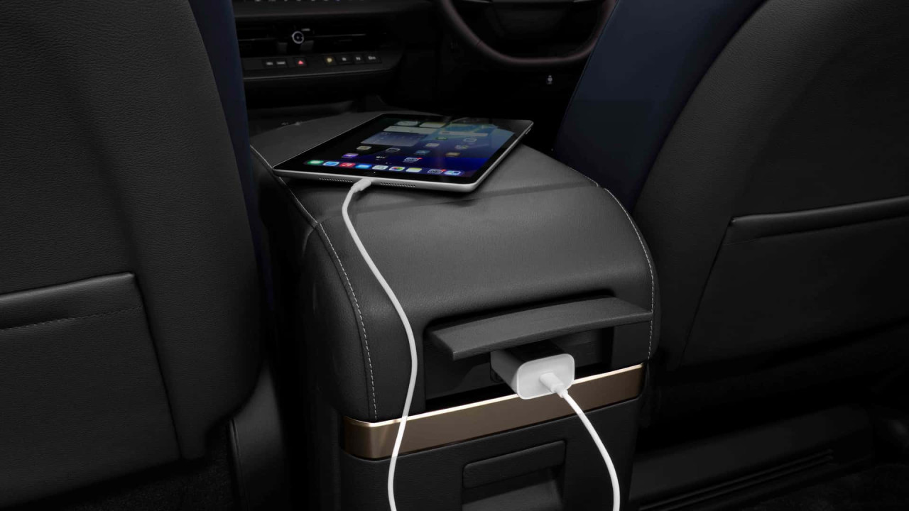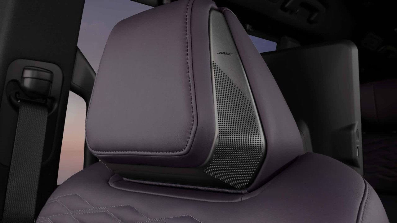 Кабината разполага с 22 говорителя, включително Bose в подглавниците. Два 14,3-инчови екрана не са премахнали всички бутони; физически управления остават на таблото. Топ версията използва капитански кресла на втория ред. По-достъпните варианти ще имат три-местна пейка. Пътниците получават мултимедийна система, слънчеви щори и широки настройки на седалките.