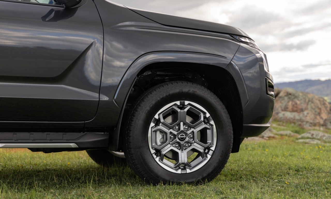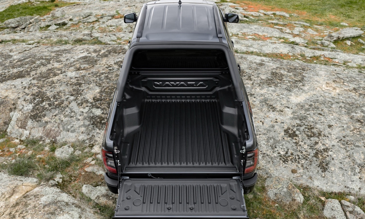 Navara споделя платформа с Mitsubishi Triton, но показва собствен стил. Предницата има V-образна решетка с три горни прореза. Формата напомня легендарната D21. LED фарове с форма на „C“ придават съвременна идентичност. Някои панели като капака и товарната кутия са общи с Triton. Въпреки това моделът запазва отличителна личност.