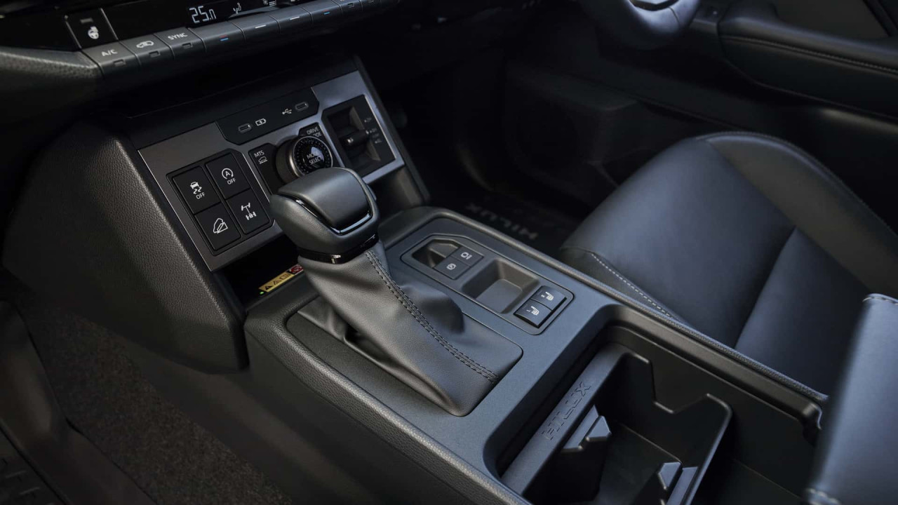 Hilux следва стила на Tacoma с по-ъглови линии и голям надпис Toyota вместо фирмено лого. Електрическата версия получава затворена предна решетка, докато дизелът и бензинът запазват класическа.